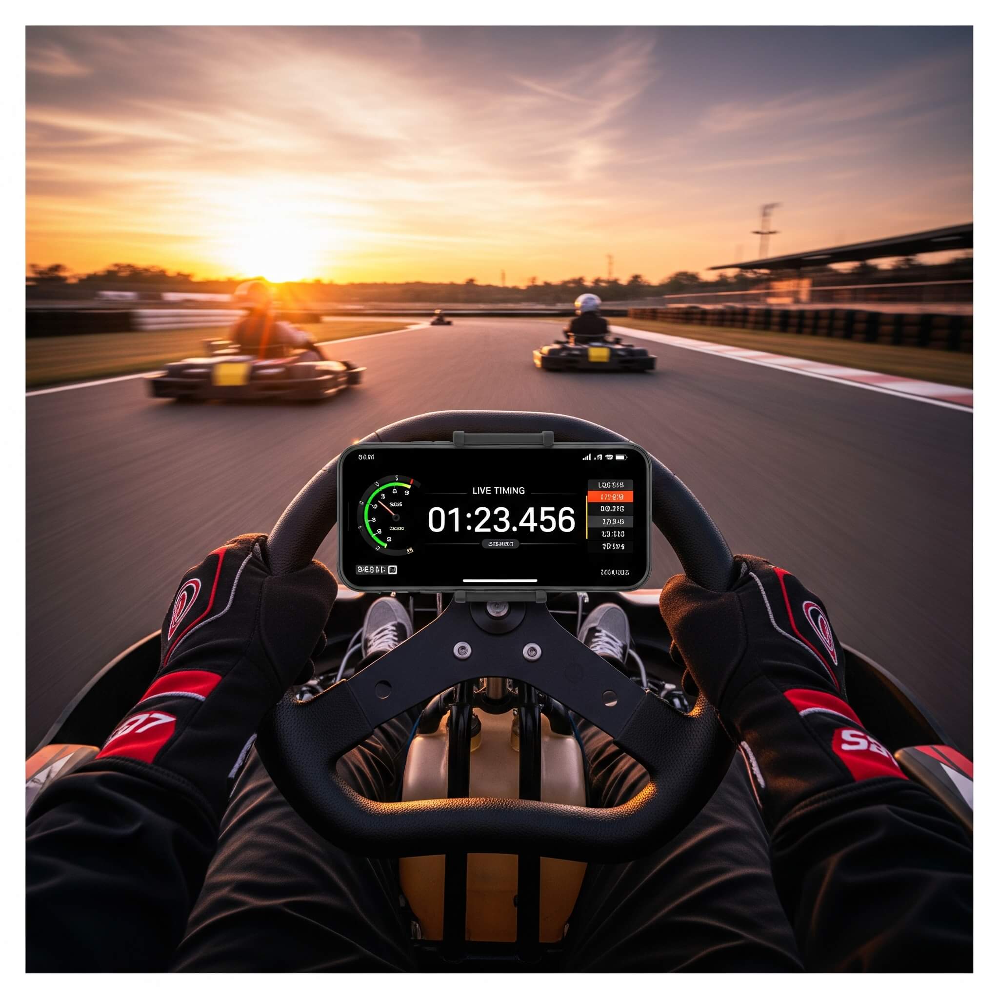 Attach to steering wheel → Launch LiveTiming → Analyze every lap instantly and race smarter than ever before.